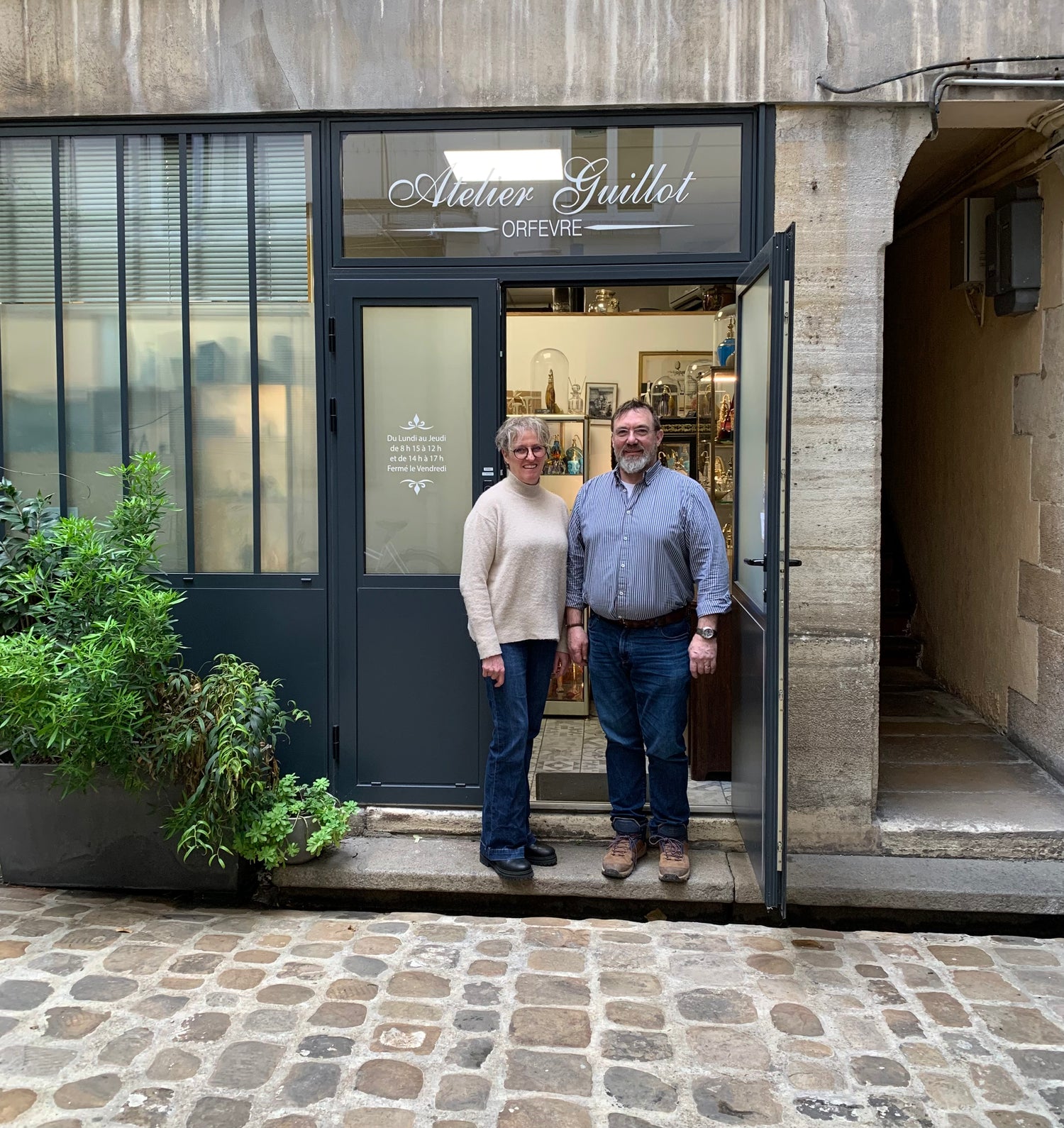 L’Atelier Guillot, niché au cœur du Marais, dans le dédale d’une cour classée, est spécialisé dans la restauration de pièces d’orfèvrerie anciennes, théières, timbales, couverts, chandeliers, ainsi que la restauration de vaporisateurs à parfums anciens.