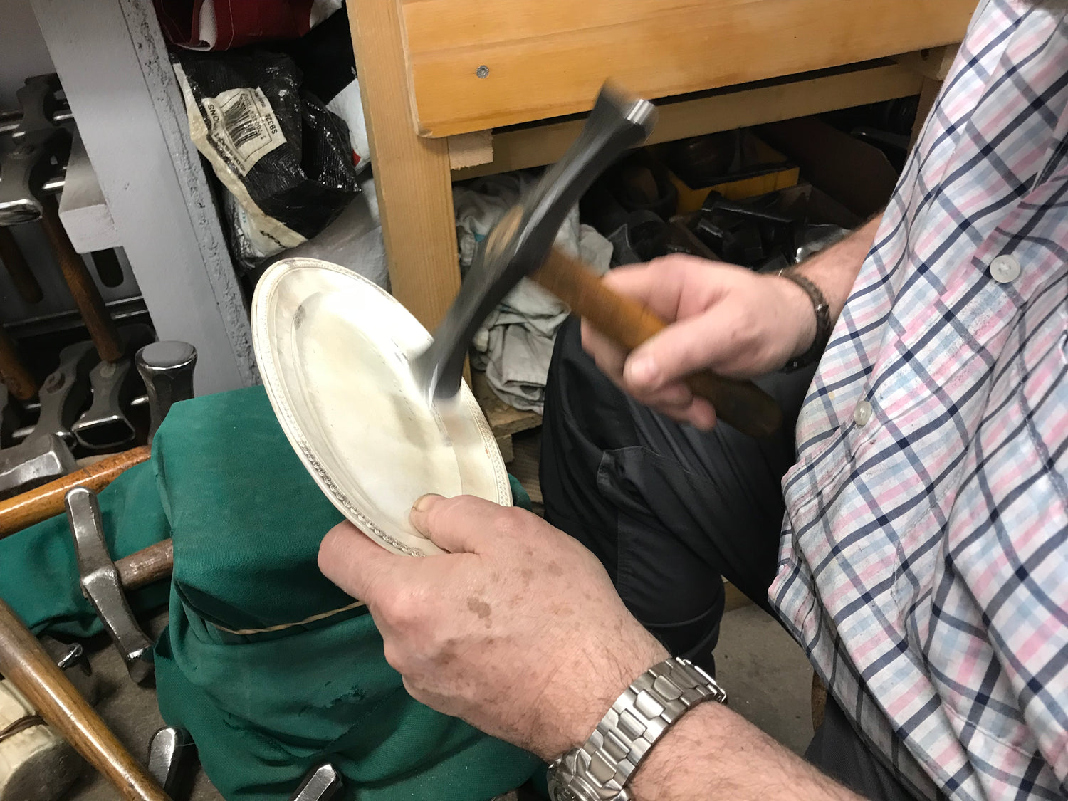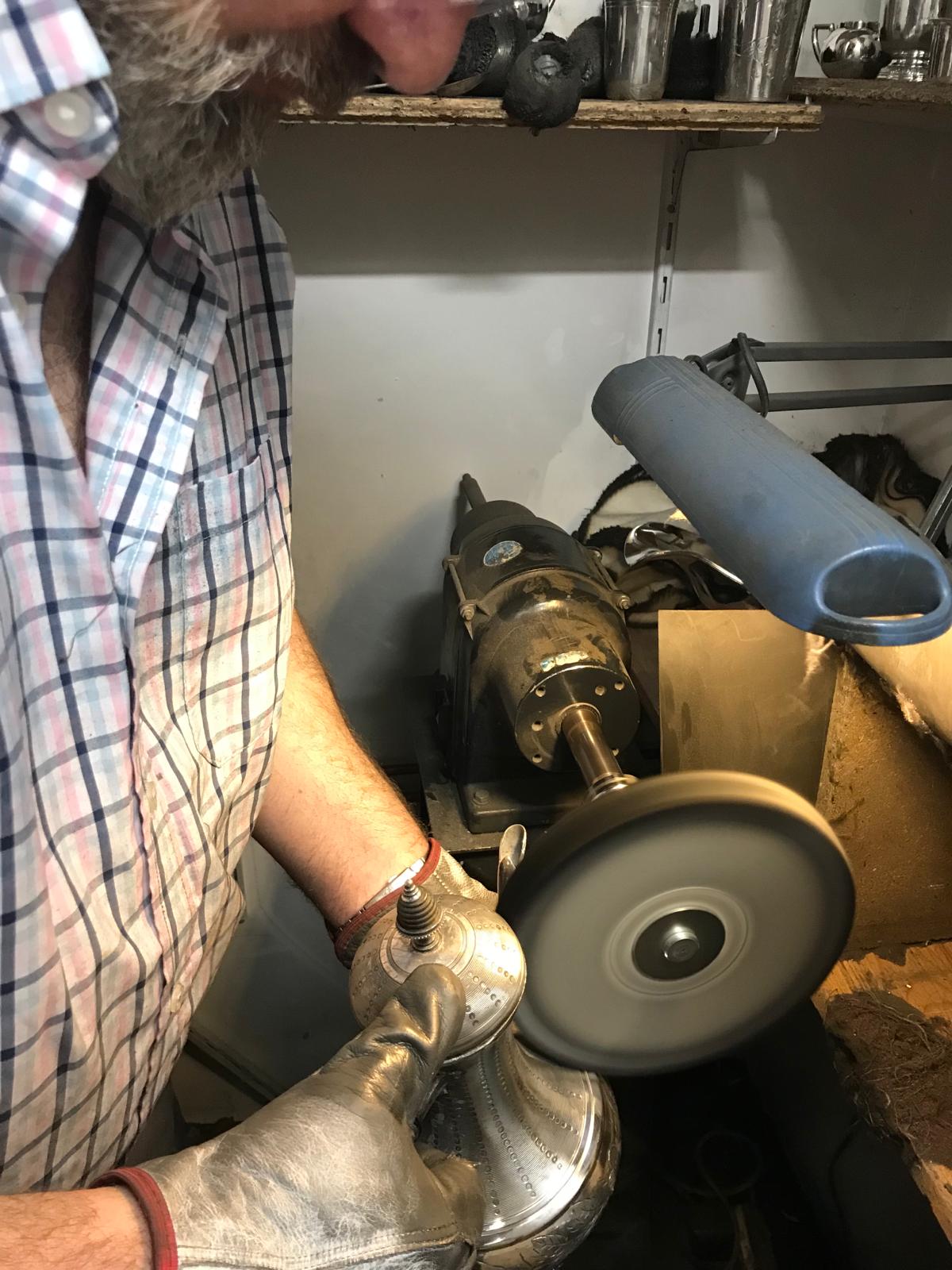 Débosselage, dégravage après soudure et polissage d’une timbale en argent